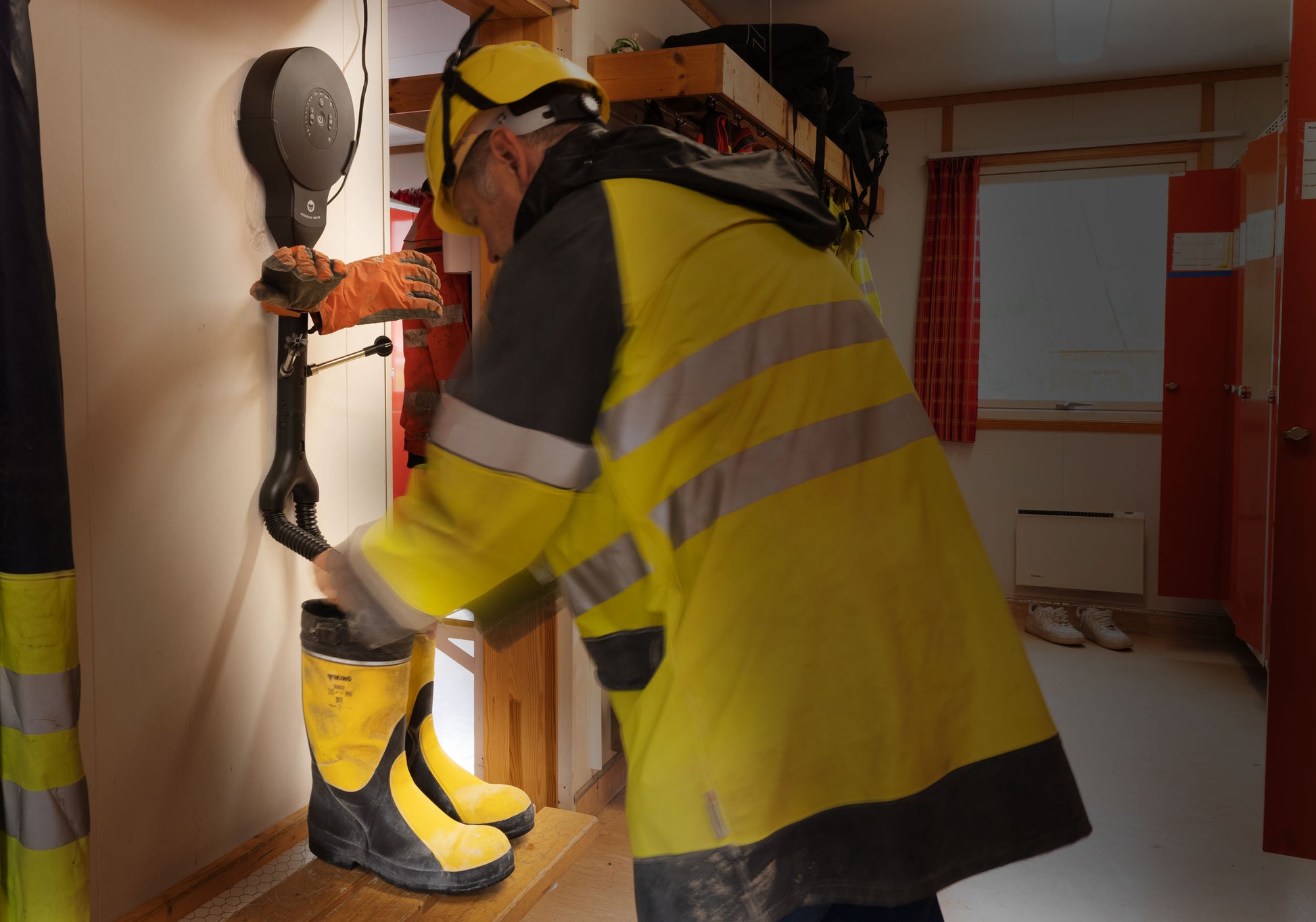Alt-i-ett-tørker for sko, boots og hansker. Tørker barnas sko og votter på rekordtid og holder gangen ren og ryddig.